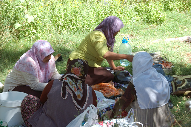 健行時巧遇依斯蘭婦女在溪邊烤肉