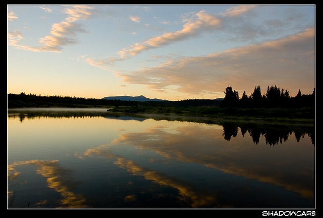 大概六點多太陽就出來了,陽光灑在提頓的山頭,在配上湖上的倒影,所構成的圖畫真的是很美